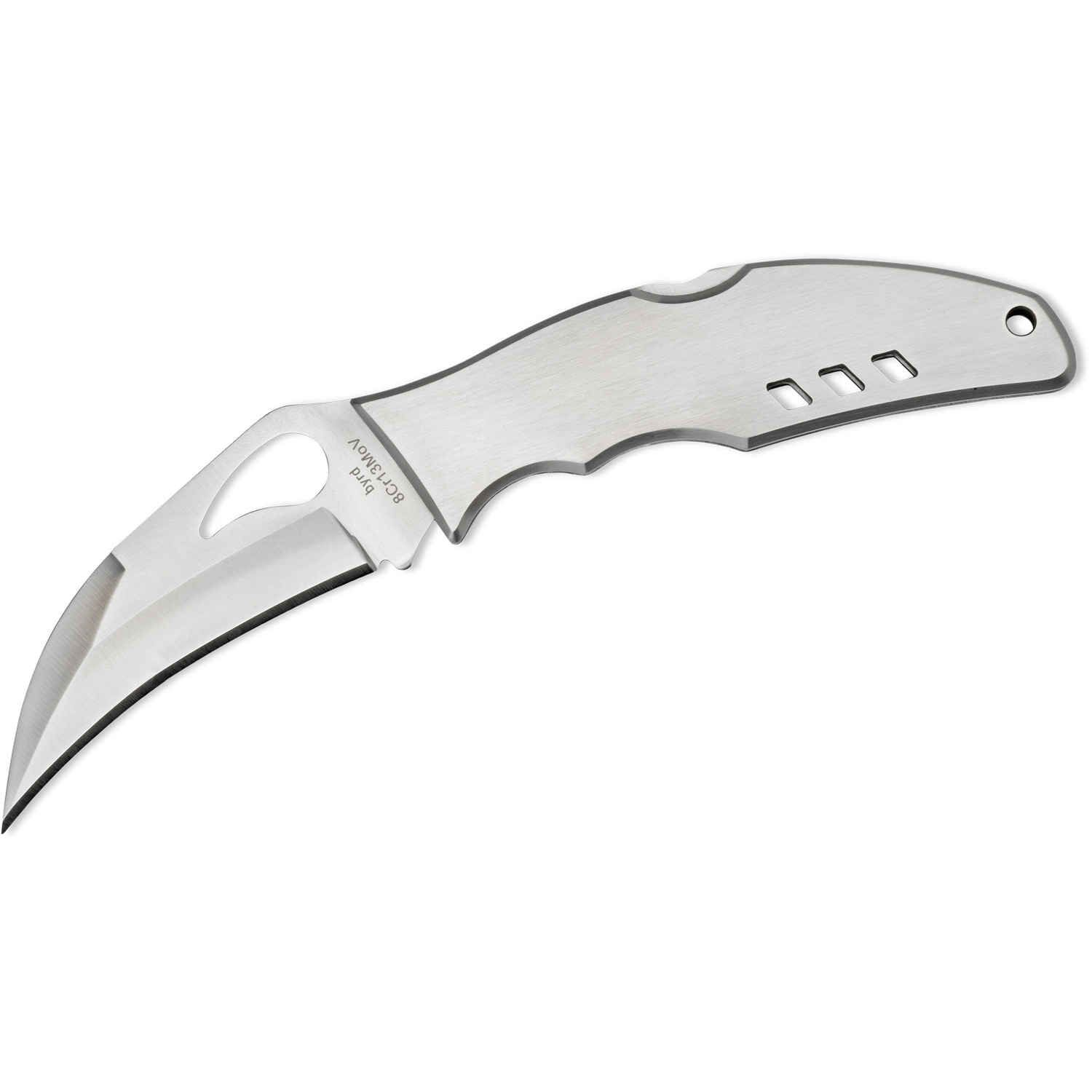 Its comet-looking blade hole is a trademark of the byrd line and is synonymous with the stringent quality requirements, high performance materials and manufacturing, which go into every byrd knife. Entirely stainless steel, the handle has ergonomic contours making long term and strenuous cutting more comfortable. A David Boye Dent is ground away from the lock release to inhibit the chance of gripping the knife tightly enough to unintentionally release the lock during use.
