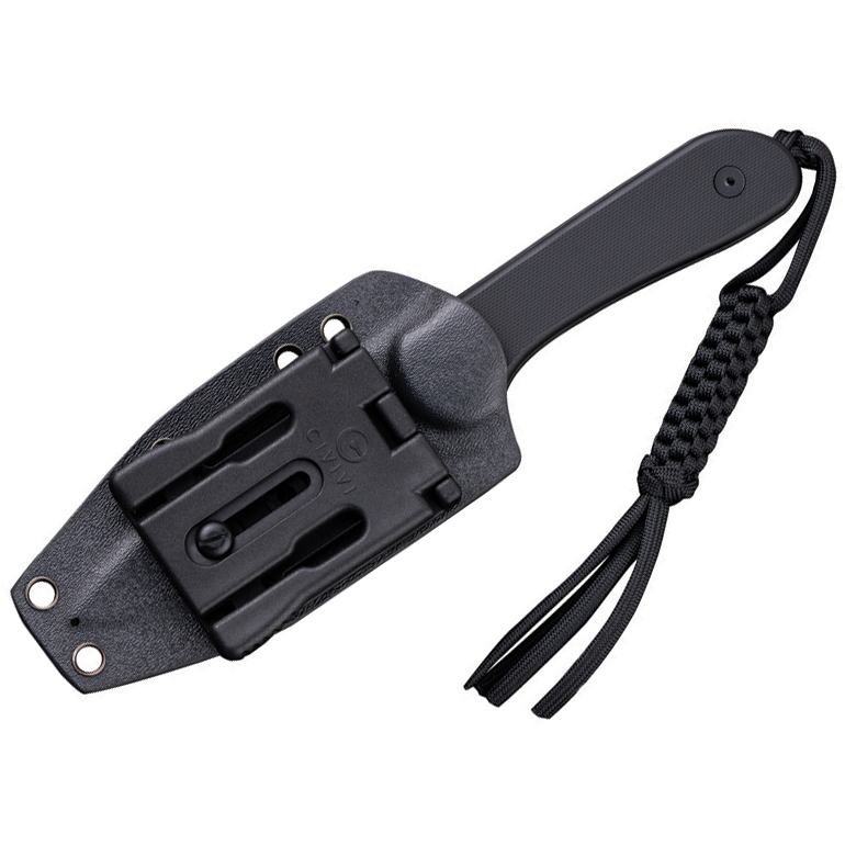 The Elementum features a T-Clip for convenient carry. The knife comes with a black Kydex sheath that is durable and practical, ensuring that your knife is always close at hand. Additionally, a black tied paracord lanyard is included, adding versatility to the knife’s carry options.