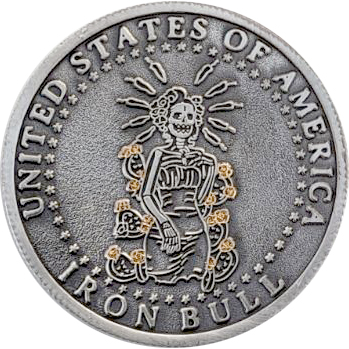 Introducing the IronBull Slinger Challenge Coin, a perfect fusion of functionality and style in the world of everyday carry essentials. Crafted with precision and passion, this coin is not just an accessory; it’s a symbol of cutting-edge excellence. A cow skull adorned with a gold nose ring, takes center stage. This symbolizes strength, resilience, and a connection to the rugged spirit of the American West. Flipping the coin reveals an equally captivating design on the reverse side. A depiction of a skeleton woman is accompanied by the inscriptions “United States of America” and “IronBull.” This combination of imagery and text encapsulates the essence of IronBull Slinger – a fusion of American identity and the robust, enduring nature of iron.