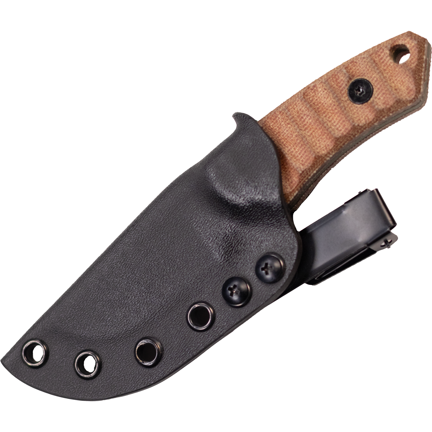 Its natural Micarta handle offers a secure, all-weather grip, with ergonomic shaping and a finger guard for added control. Full tang construction means it’s built for abuse, and the included sheath offers dependable ambidextrous carry.