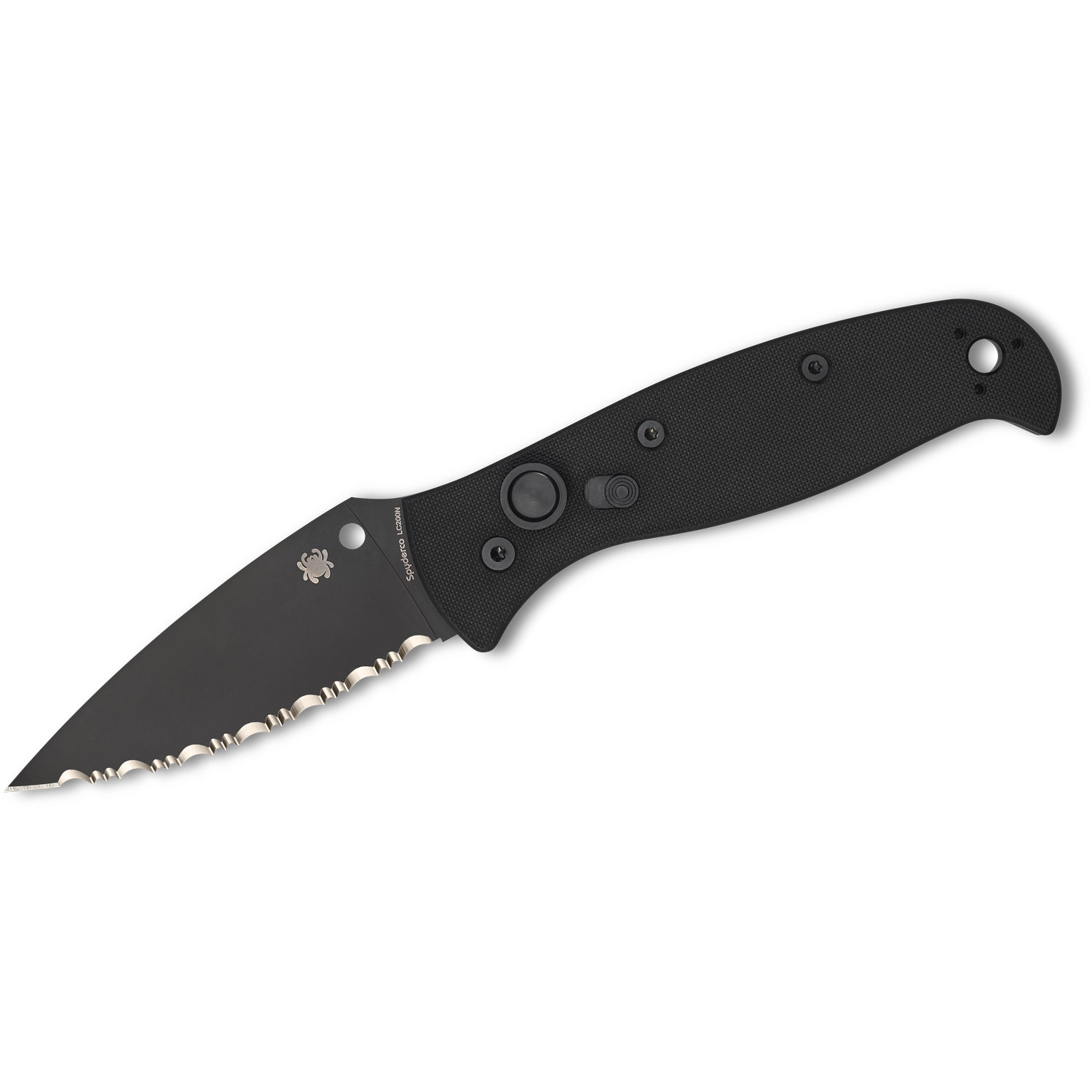 (Black G10 Handle and 3.50″ LC200N Rustproof Steel Black DLC Serrated Blade)