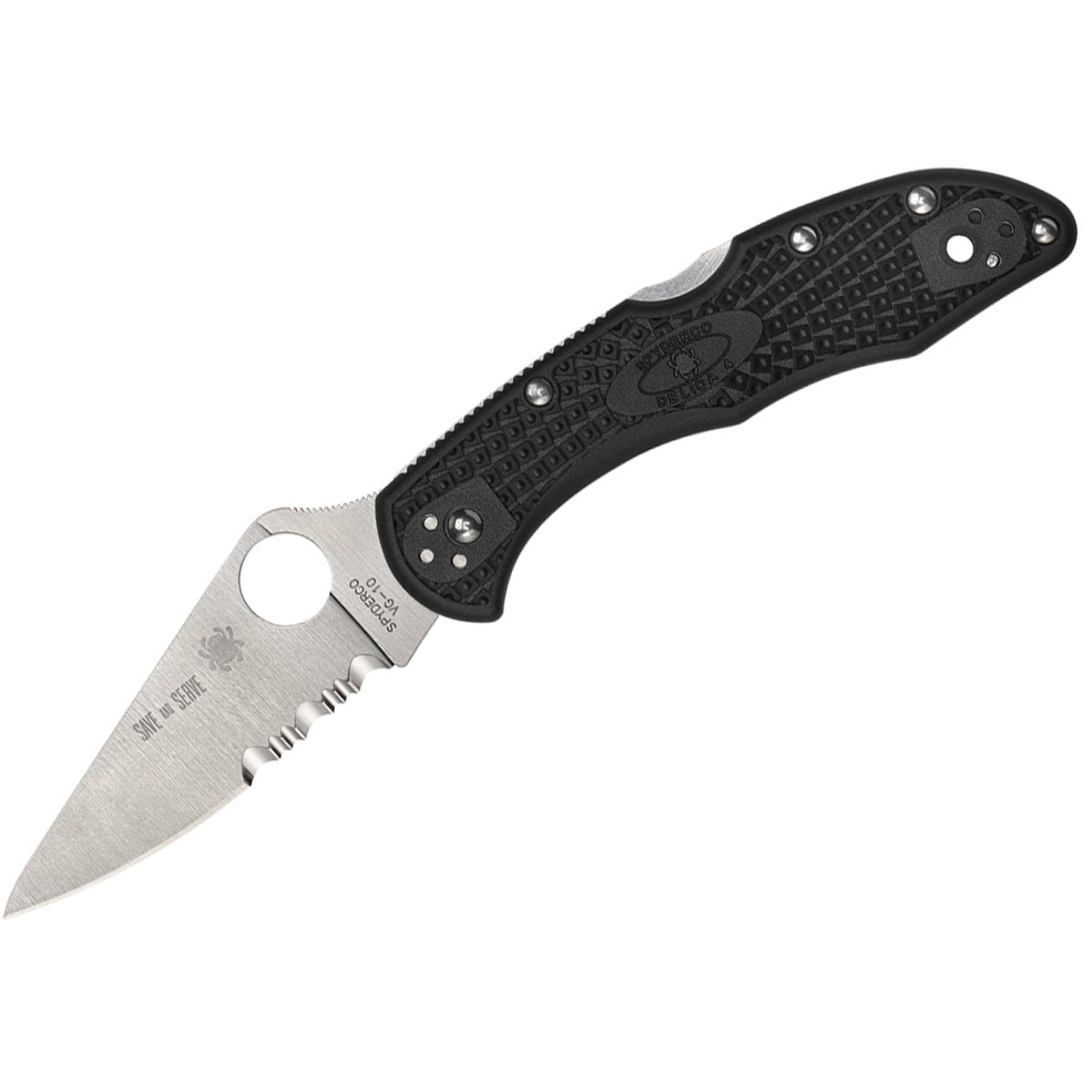 Created as a tribute to our nation’s courageous firefighters, Spyderco’s “Thin Red Line” knives are distinctive expressions of our workhorse lightweight models. Their defining feature is their unique handle design, which showcases black fiberglass-reinforced-nylon (FRN) handle scales accented by a bright red lining and a matching red backspacer. This color theme symbolizes the “thin red line” first responders represent between the normalcy of our daily world and the chaos of life-threatening emergencies. The VG-10 blade of this Delica 4 Lightweight also combines the enhanced edge geometry of a full-flat grind with the voracious cutting power of Spyderco serrations. To honor the selfless service of first responders, every blade is proudly laser engraved with the motto “Save and Serve.” All other features of these elite knives are consistent with the standard version of this model, including a reliable back lock mechanism, skeletonized stainless steel liners, four-position pocket clip, and Bi-Directional Texturing.