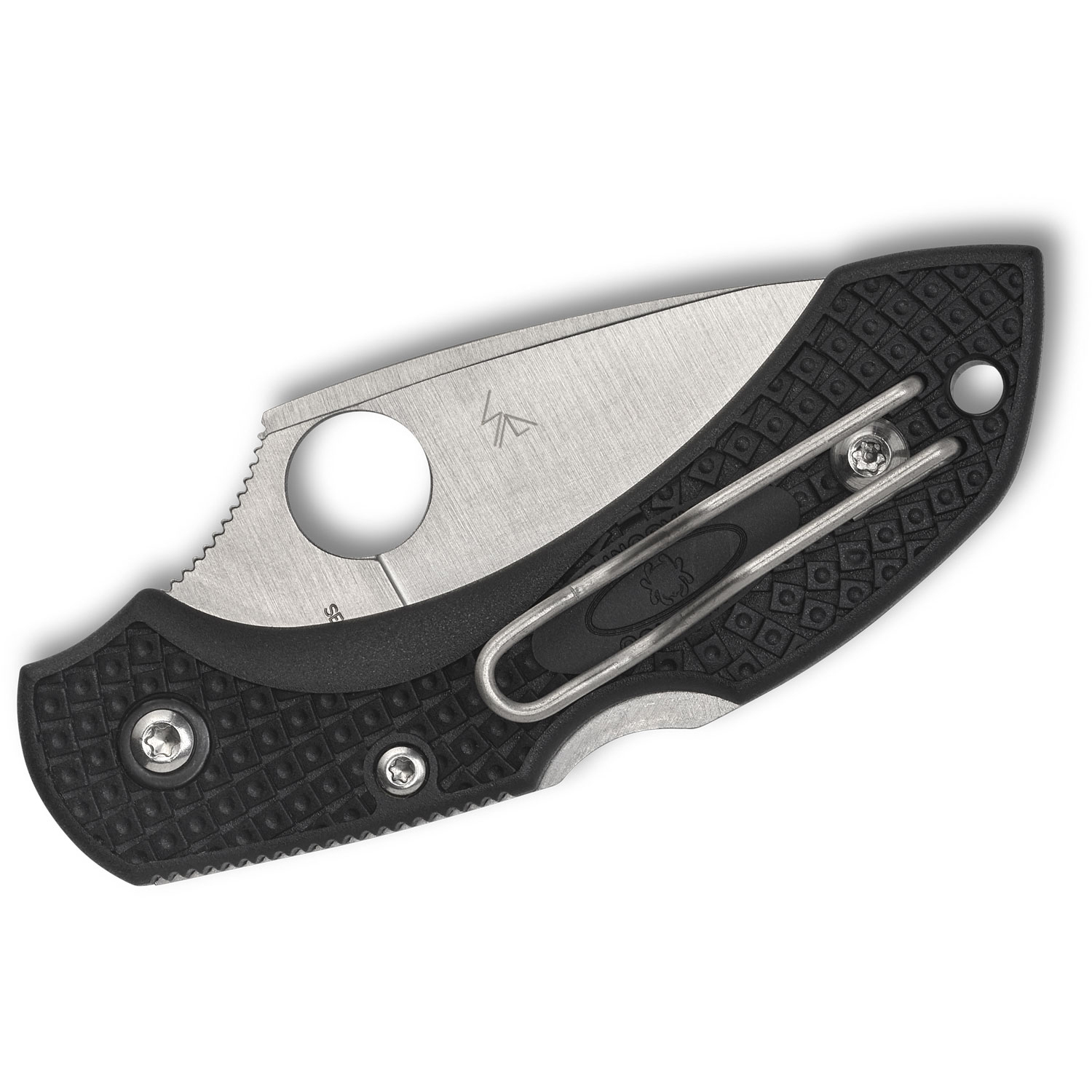 The position of the enlarged Spyderco Round Opening Hole in relation to the pivot leads to smooth oepning and the FRN (fiberglass reinforced nylon) handle fits the hand ergonomically with a series of grip angles and leveraging spots.