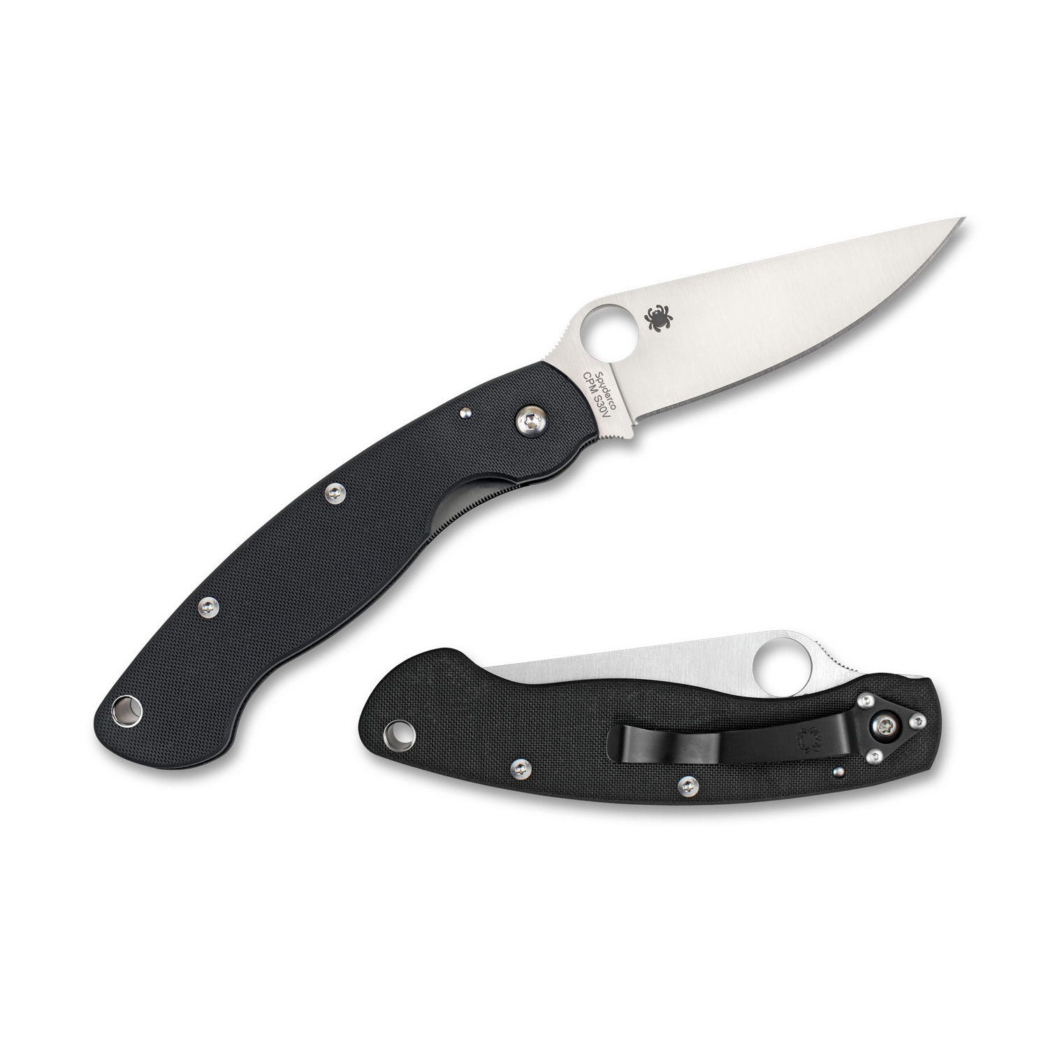 Designed with the needs of deployed service personnel in mind, the Military Model exemplifies Spyderco’s motto of “Reliable High Performance.” Its premium CPM S30V stainless steel blade features a modified clip point profile and a full-flat grind for an exceptional balance of strength and cutting performance. The Military Model also features an enlarged 14mm Trademark Round Hole for one-handed opening—large enough to use even while wearing gloves.