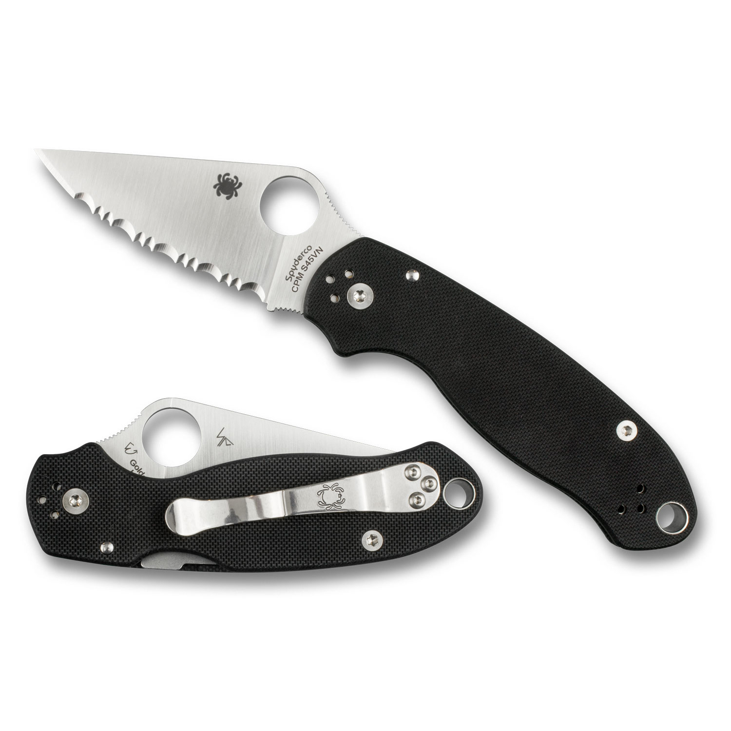 The Para 3 takes all the proven features and benefits of Spyderco’s best-selling Para Military 2 and distills them into an even more compact all-purpose cutting tool. Its three-inch blade is precision machined from premium CPM-S45VN stainless steel and features a full-flat grind for a superior balance of strength, point utility, and low-friction cutting performance. It includes a textured index-finger choil and thumb ramp that provide a solid purchase for a forward grip and offer enhanced control during precise cutting tasks. The blade’s signature Trademark Round Hole clearly brands it as a member of the Spyderco family and is fully accessible to allow quick, positive, one-handed opening with either hand.