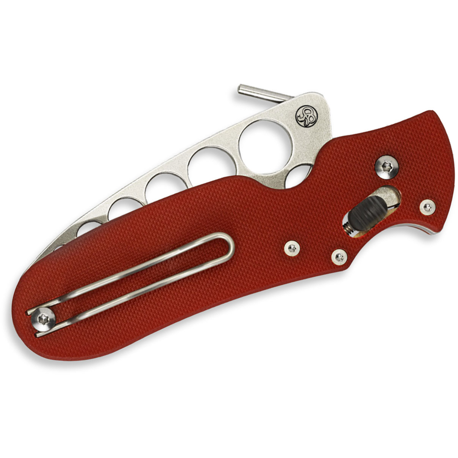A defensive tool is useless without the skills to power it, and the best way to develop those skills is with proper training equipment. The P’Kal Trainer is mechanically identical to its live-blade counterpart, but features a blunted edge and rounded point to allow safe contact with a training partner. The multiple holes in the blade make its weight comparable to the live version and, along with its bright red G-10 handles, easily identify it as a training tool. Fully configurable for any tip-up carry position and featuring the same removable Emerson Opening feature, the P’Kal Trainer allows you to integrate all phases of your training—carry, deployment, and contact tactics—into a seamless flow