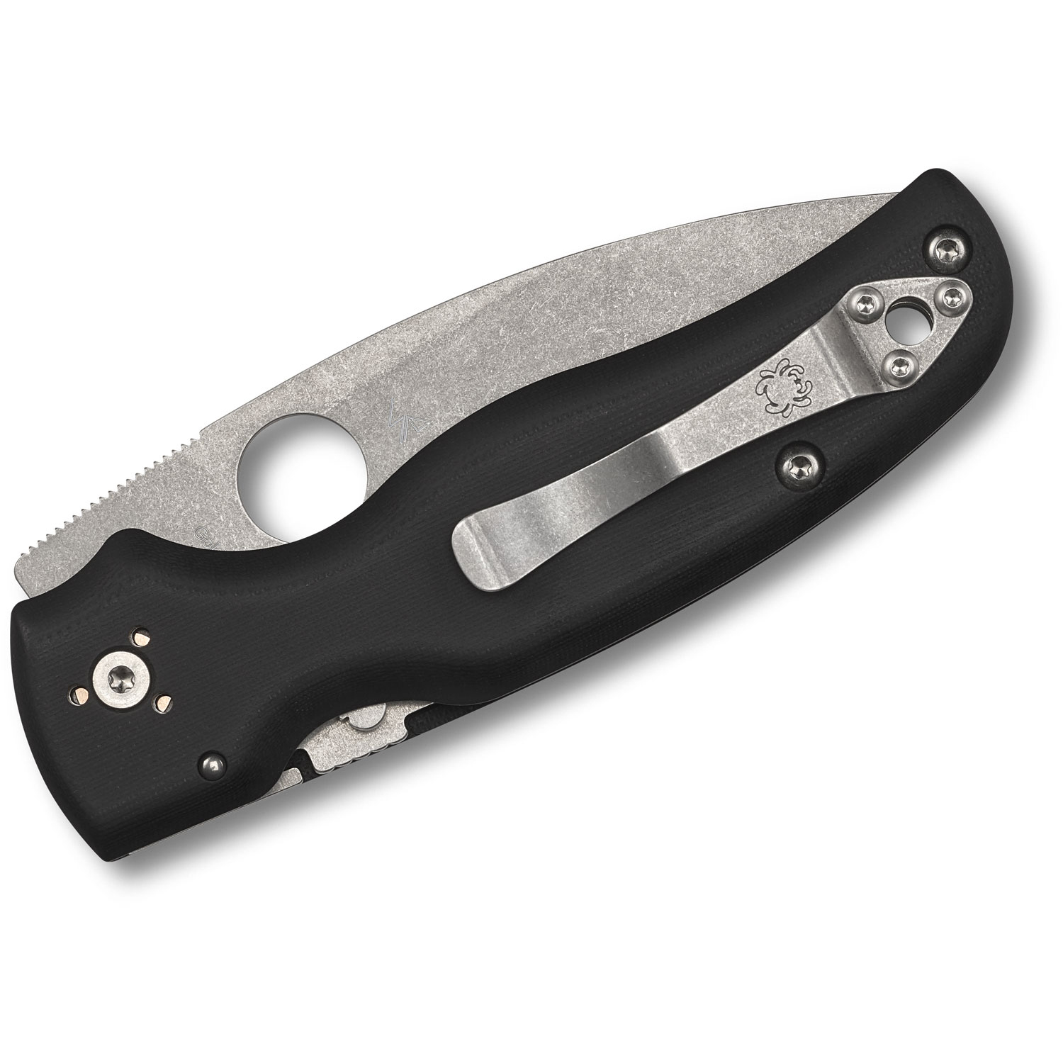 To ensure convenient carry and immediate access, a stonewashed four-position pocket clip offers left or right-side, tip-up or tip-down carry. Available with either a PlainEdge or fully serrated SpyderEdge blade, the Shaman offers powerful cutting magic in a stylish, user-friendly format.